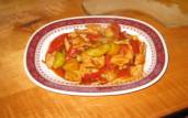 Gebr. Schweine- oder Putenfleisch oder Shrimps, süß/sauer, Reis